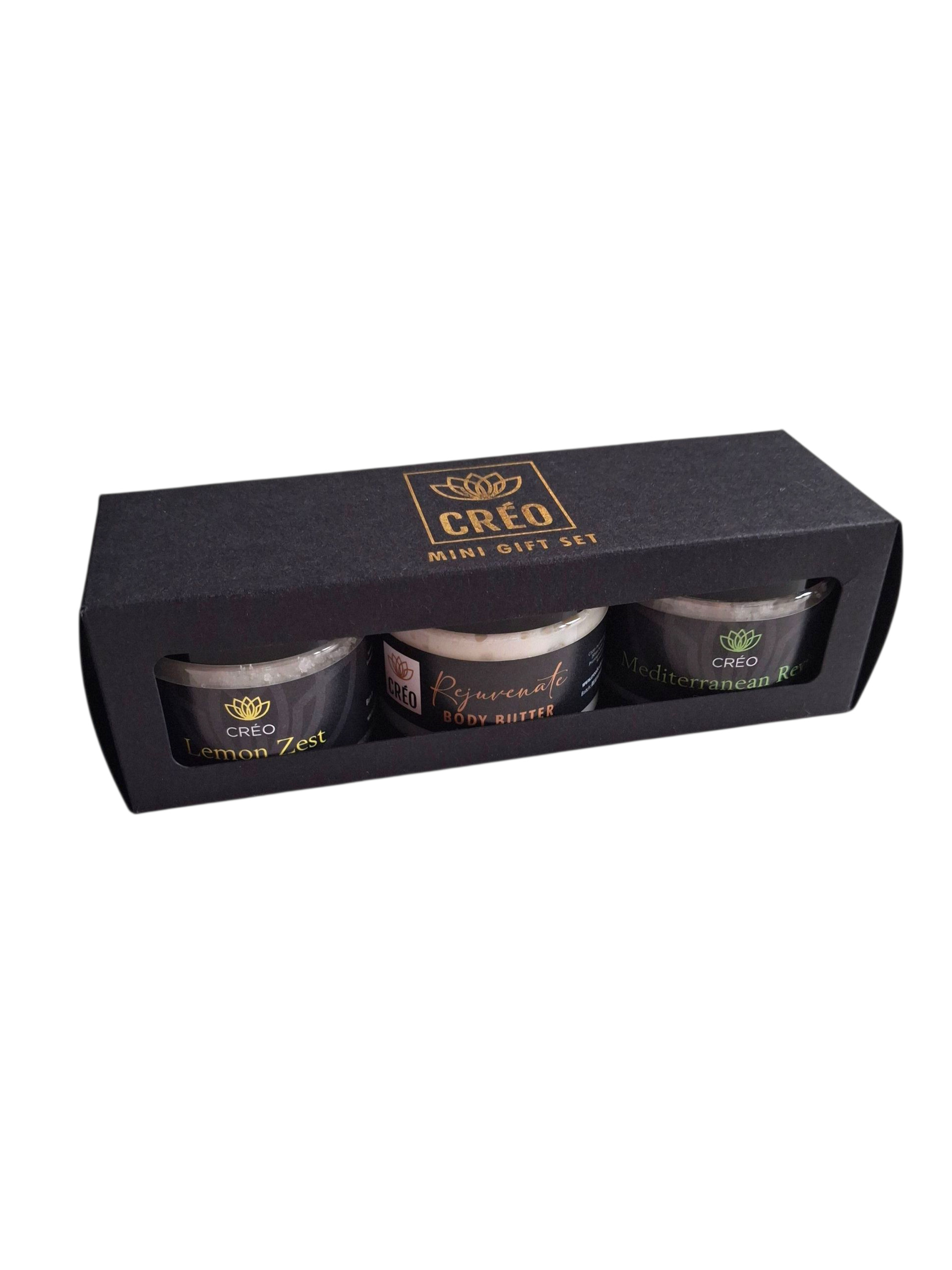 Contains: 1 x 50g Mediterranean Revive scrub , 1 x 40g Rejuvenate Body Butter, 1 x 50g Lemon Zest scrub.